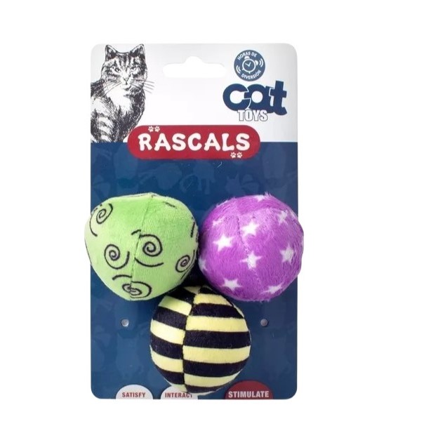 / PACK DE 3 PELOTAS PARA GATOS CON RELLENO Y HIERBA GATERA, EN BACKCARD